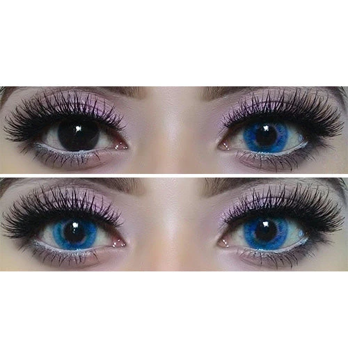 Sweety Colorful Rio blue are vivid and bright. Depending on your own eye color, these lenses may appear darker or lighter but the results will always be quite bewitching. Though the enlargement effect is muted, the vividness is what will catch your attention. Despite having multiple tones that are all entwined together, the lenses are inclined to look natural against whatever eye color you bear. Sweety Colorful Rio blue contacts are naturally opaque, thus expect them lucid and bright in photo shoot. They are between loud & saturated therefore the impact is pretty solid yet appealing to the eyes.